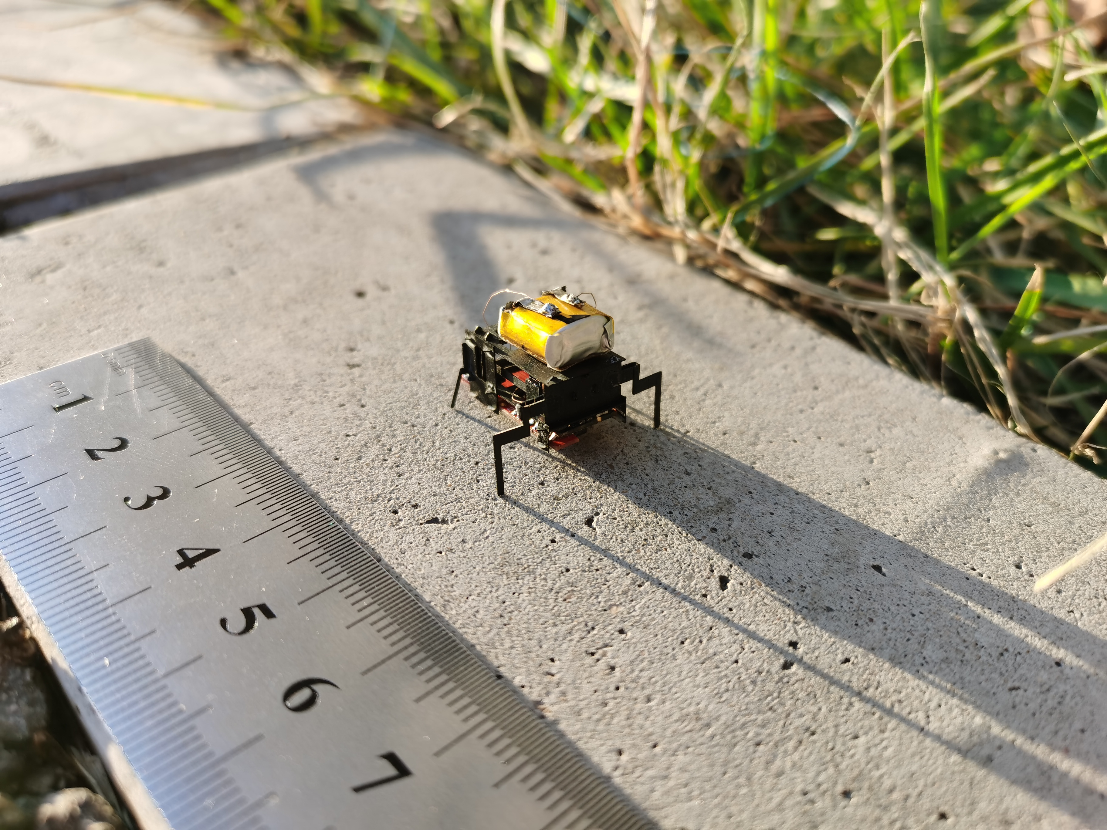 Insects with high agility in nature can achieve high-speed linear locomotion and quick turns of small radius to prey or avoid risks. Inspired by these biological machines, insect-scale legged microrobots (dimensions less than 5 cm) have been proposed by roboticists and demonstrate excellent tethered locomotion performance using external power sources and control electronics. Considering that the tethered movements are highly restricted in confined space and real application scenarios often require high untethered mobility, a variety of untethered microrobots integrated with onboard power sources, control units, and task loads have been developed further based on their tethered configurations. However, severe performance degradation occurs after these microrobots carry necessary payloads, which becomes a bottleneck for microrobots to achieve high untethered locomotion performance. In our recent work, a 2-cm wireless controlled robotic insect “BHMbot” (1.5 cm by 2.0 cm, 1.76 g) is proposed and demonstrate ultrafast untethered running speed and turning agility comparable to that of real insects after integrating with power and control units.