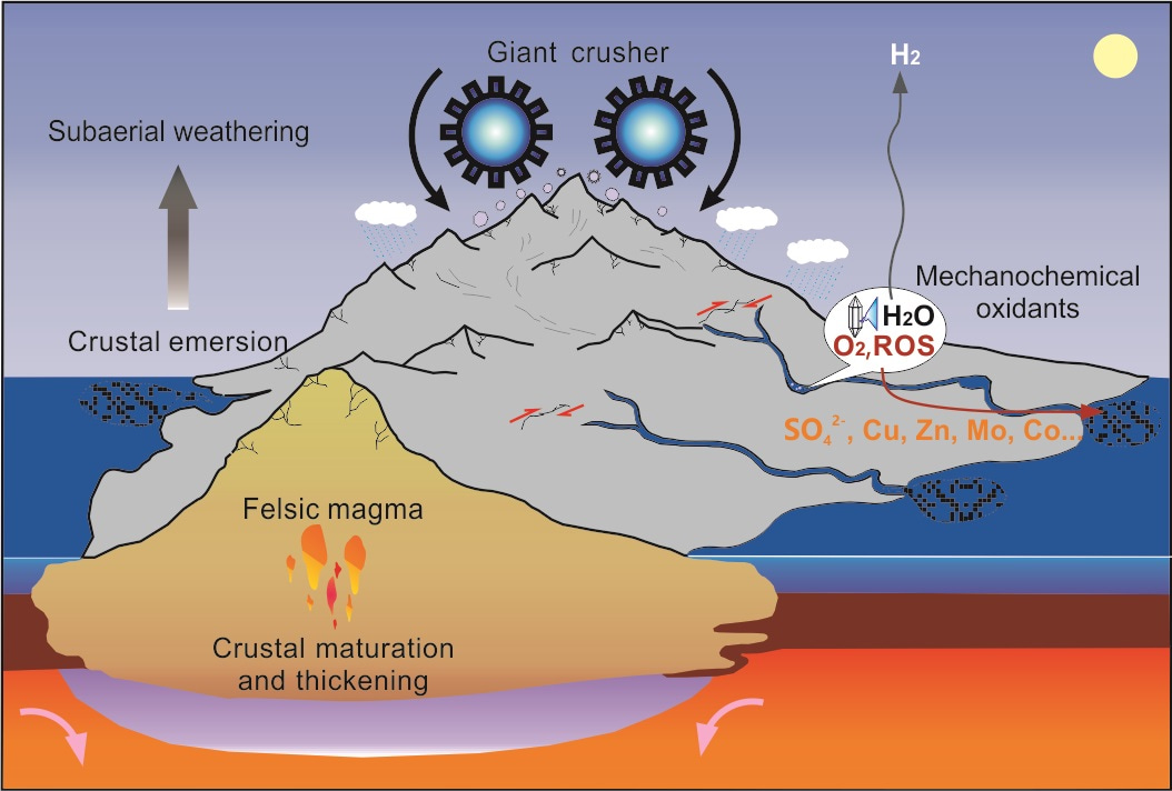In a recent study published in April in Communications Earth & Environments, an international team of scientists from the Guangzhou Institute of Geochemistry, the Chinese Academy of Sciences, The University of Hongkong, and the University of Alberta has answered this question. Building on the team’s earlier discovery of an abiotic pathway for Archean oxidant production at the abraded quartz-water interface (Nature Communications, 2021), they have expanded the oxygen-producing mechanism to include oxidation of H2O to hydrogen peroxide (H2O2) by mechanically induced surface radicals on silicate minerals.