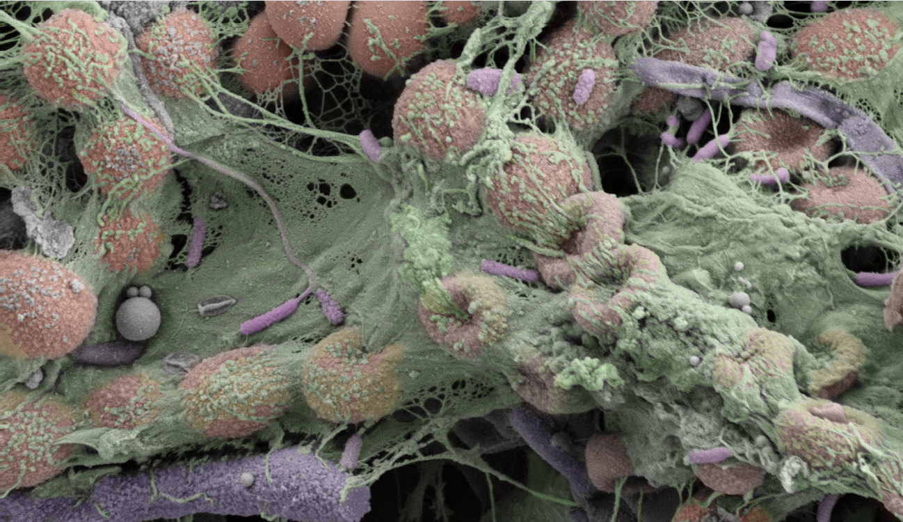 Figure: SEM image of the microbiome found in the inner surface biofilm of bath toys