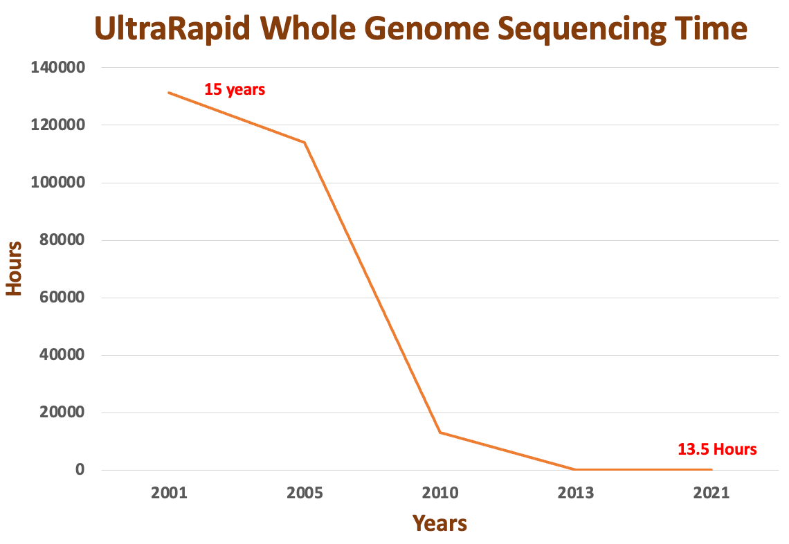 Utilizing various short or long read genome technologies for sequencing can be time-consuming and may not meet the need for speed. Numerous studies have demonstrated the effectiveness of Oxford Nanopore whole genome sequencing, with a turnaround time of within a few hours (less than 10 hours). However, this process involves extensive compute power for base calling, which may not be readily available to regular clinics or hospitals. Conventional sequencing methods may still necessitate a 24-hour timeframe, and an additional day may be required for base calling, mapping, and variant calls. Given the current configuration, it is practically unfeasible for most healthcare institutions to carry out whole genome sequencing within a few hours.