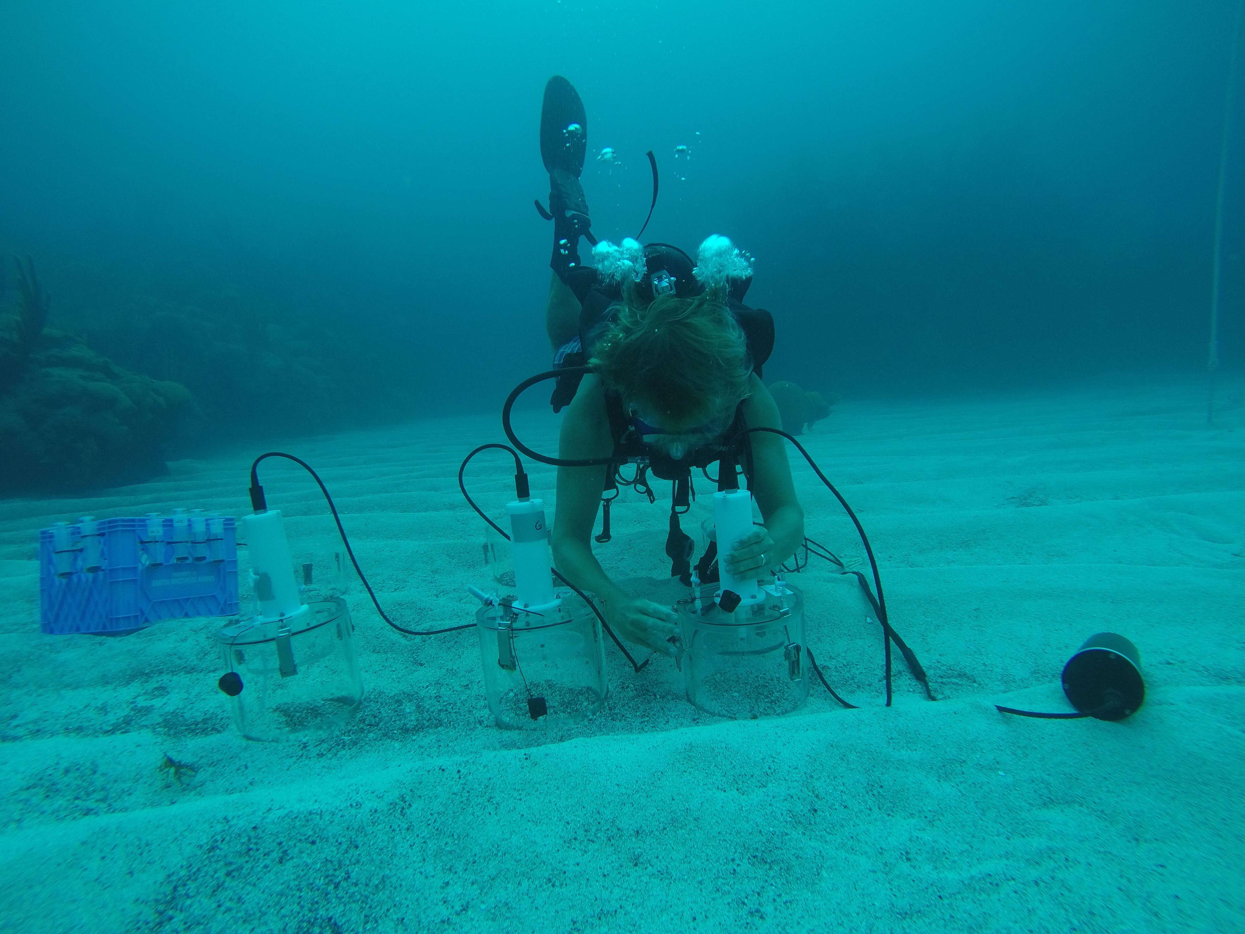 Tyler sampling benthic chambers in Bermuda (Credit: Andreas Anderson).