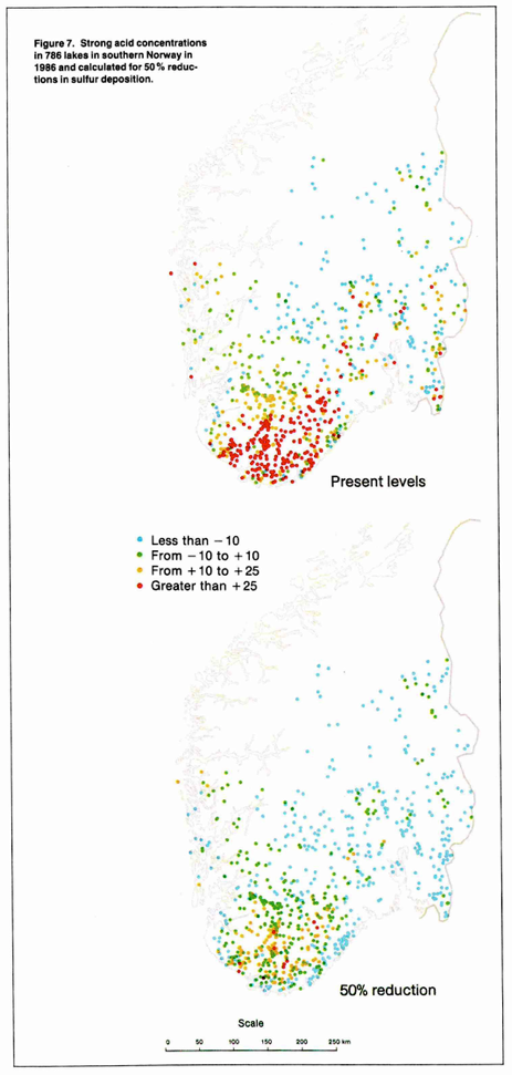 It was the loss of fish populations that signaled something was happening to the lakes in Norway and triggered a long series of very high quality surveys and experiments by an amazing group of scientists at the Norwegian Institute for Water Research. The empirical observations helped stimulate other research in many countries to understand the acidification impacts of air pollution on aquatic ecosystems. The Norwegian lake survey in 1986 made the linkage between acid deposition and lake acidification clear.