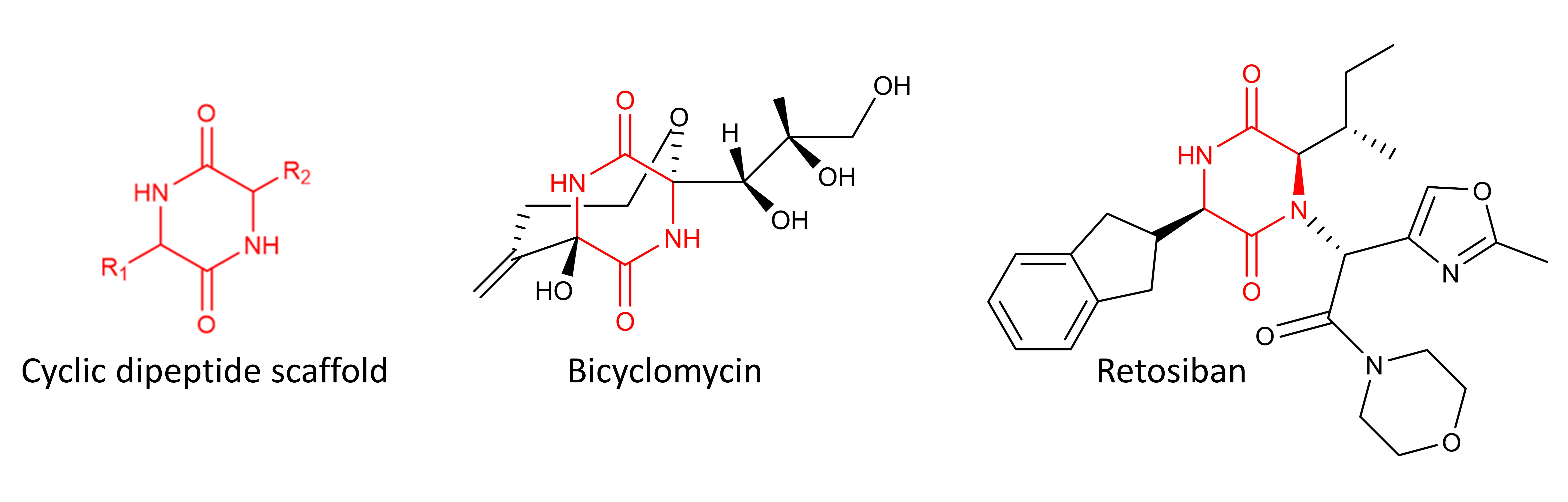Cyclic dipeptides are composed of two amino acid building blocks, creating a structurally rigid 6 membered ring . Despite being the smallest of the cyclic peptide family, this class of molecules have been found to display remarkable properties such as blood-brain barrier permeability and resistance to bond hydrolysis, as well as being antibacterial, antifungal, anticancer and the list goes on. All of these factors have led to cyclic dipeptides being described as 'privileged' scaffolds making them attractive molecules for future research.