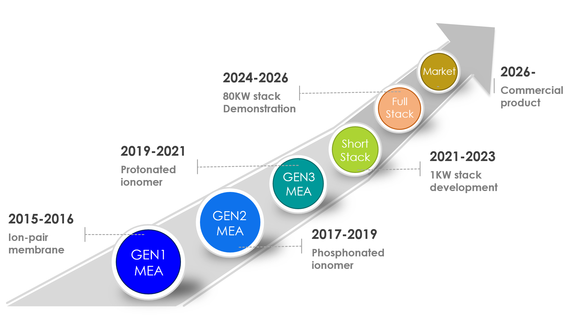 Figure 2. Projected commercialization plan for Ion-Pair HT-PEMFCs