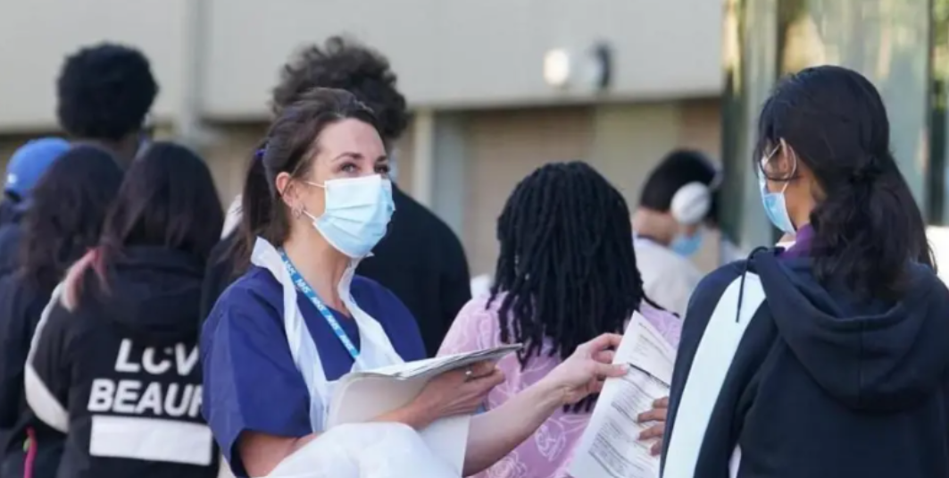 Students waiting for Meningitis B vaccines in Kent.