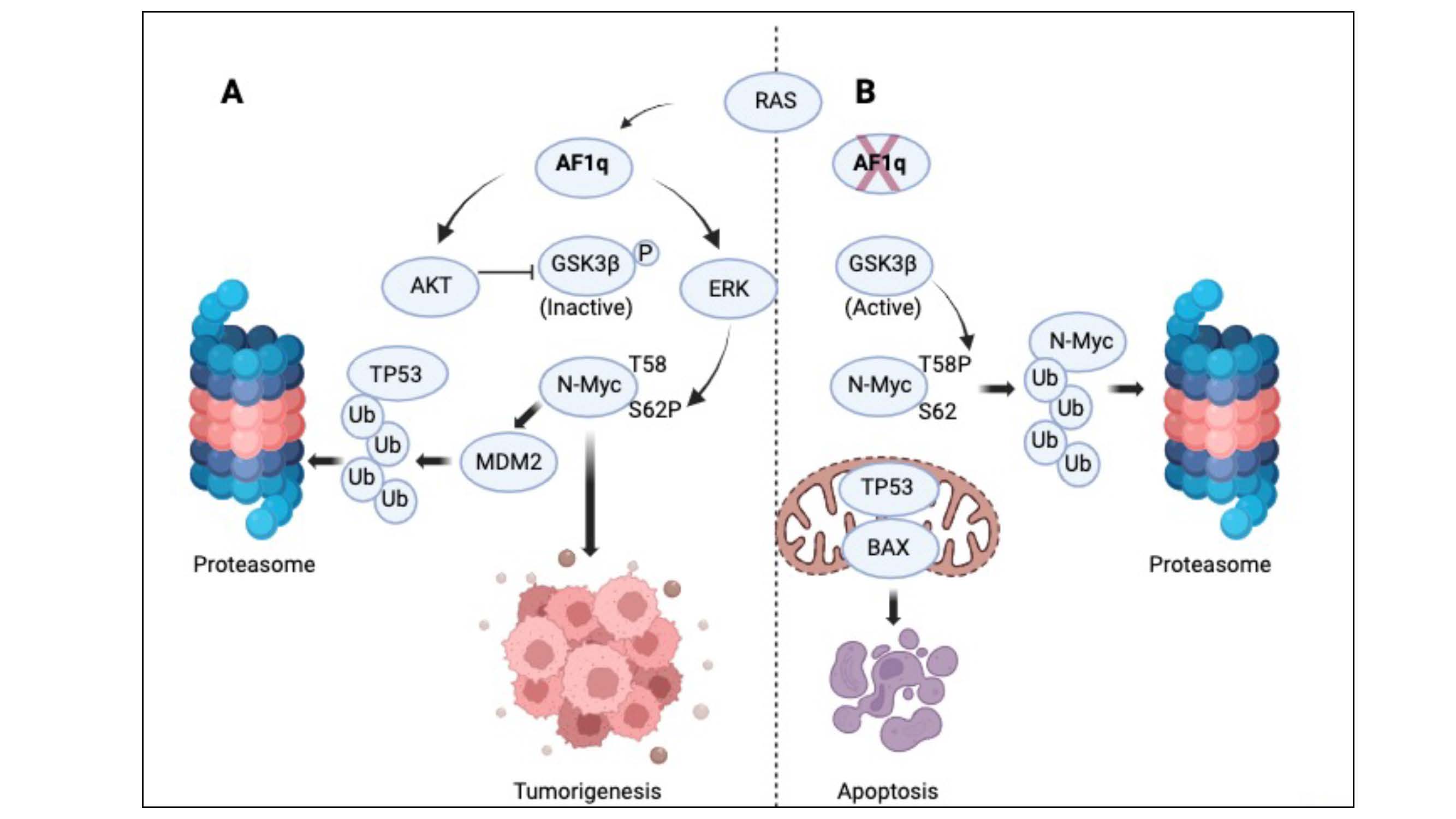 Moreover, through a series of cell biology experiments in multiple neuroblastoma cell lines, we demonstrated that AF1q protects N-Myc from ubiquitination and proteasomal degradation. It does so by impacting AKT/GSK3b and Ras/ERK signaling pathways.