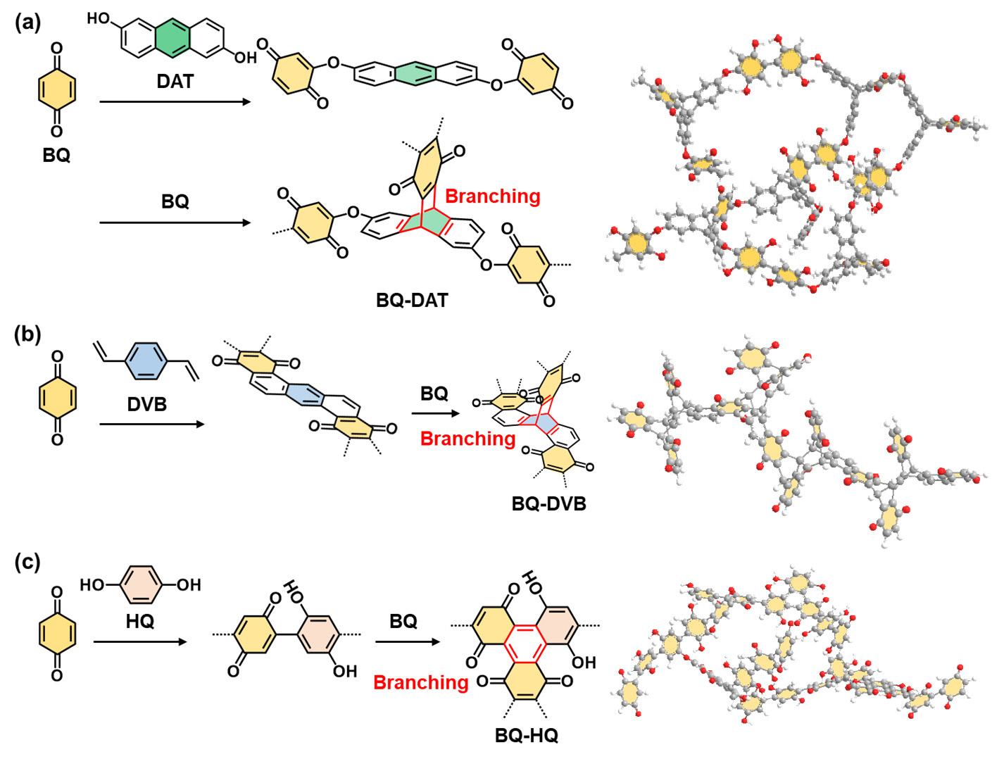If the multiple reactions simultaneously proceed at different rates and in different growth directions, the random copolymerized networks can be obtained. The functional molecules can be dispersed in the network structures without formation of the crystalline aggregates (Figure 3). Moreover, the low-crystalline assembly of the network polymers facilitates the exfoliation into the nanostructures, such as particles, flakes, and sheets. Therefore, the functional molecules as the units can be efficiently used compared with the rigid crystalline assemblies. The amorphous polymer networks are regarded as a new assembly state of functional molecules (Figure 3). After the paper, we designed three types of the similar amorphous covalent organic networks containing BQ moieties. The resultant nanoflakes based on the amorphous covalent organic network exhibited the high-specific capacity originating from the redox reactions of the BQ moieties. The specific capacity is one of the highest performances in the previous works about aqueous supercapacitor. These new concepts were introduced in our recent paper.2