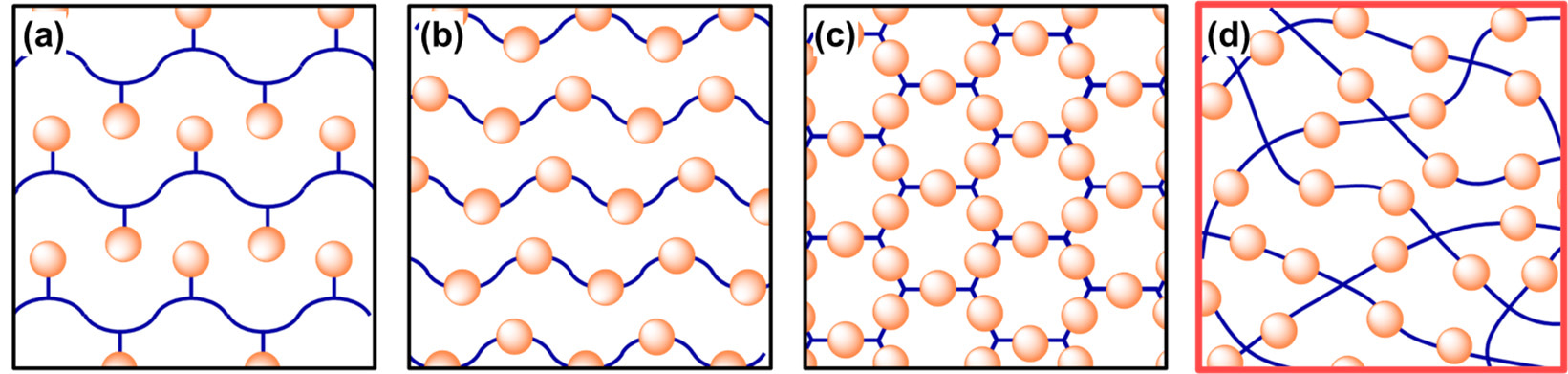 In recent years, metal-organic and covalent-organic frameworks (MOFs and COFs) have attracted much interest as a new family of self-organized materials containing regularly arranged functional molecules and pores. My collaborators might be interested in such beautiful, defined, and well-ordered architectures. Nevertheless, unfortunately, our materials had the ‘disordered’ networks and their ‘random’ stacking. They might feel why our materials are not beautiful, organized, and … at the bottom of their mind. After the paper, I have realized that the disordered and random natures are the structure advantages of our material. We have focused on the ‘amorphous covalent organic networks’ distinguished from the crystalline architectures, such as main- and side-chain polymers, MOFs and COFs (Figure 2).2