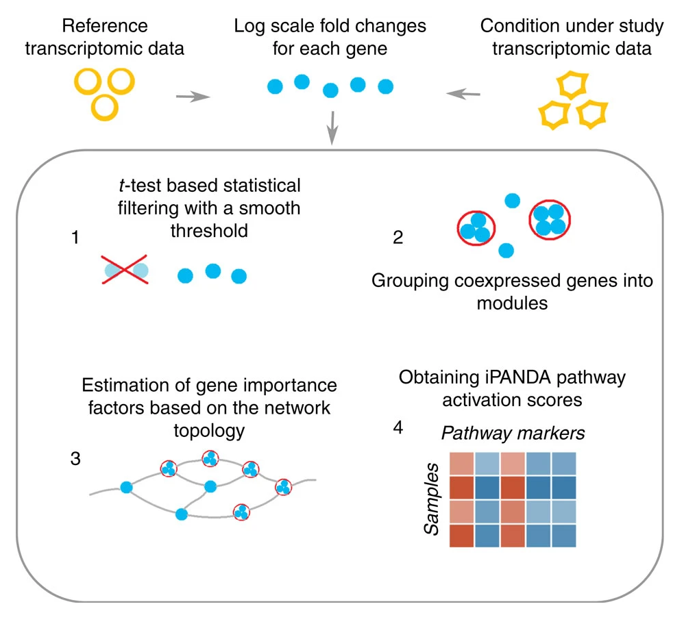 The study showed the effectiveness of iPANDA’s model, which integrated different analytical concepts while also exploiting statistical and topological weights for gene importance estimation. The approach groups genes into modules and then assesses the contribution of gene units (including gene modules and individual genes) to pathway activation by computing their fold changes in logarithmic scale, topological and statistical weights.