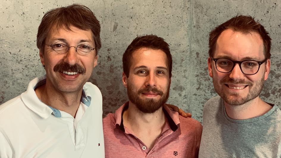 From left to right: Senior author Dirk Busch and the two first authors Thomas Müller and Kilian Schober. The photo was taken for the press release of the original study on orthotopic TCR replacement in 2019.