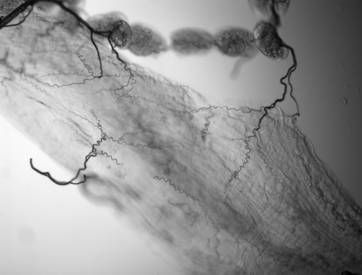 Sebastian: Yeah, the combination of staining tissues and doing microscopy with fluorescent parasites – that was cool. We established an advanced standard of studying the parasites in vivo. Earlier work in tsetse flies was concentrated on infection rates in the midgut and the salivary glands, sort of where they first establish an infection and where they sit to get transmitted to the next host. Then, scientists also considered looking into the proventriculus, a tissue that trypanosomes have to infect and colonize before they reach the salivary glands. We zoomed in even more and reached enough resolution to distinguish between parasites sitting in the midgut lumen and the ectoperitrophic space. That was important for our findings.