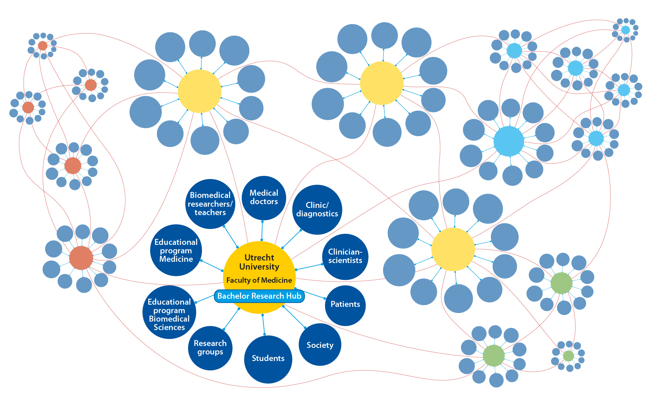 Figure 1. The Bachelor Research Hub at the Faculty of Medicine (Utrecht University) and its potential network to foster transdisciplinary challenge-based education in Translational Medicine.
