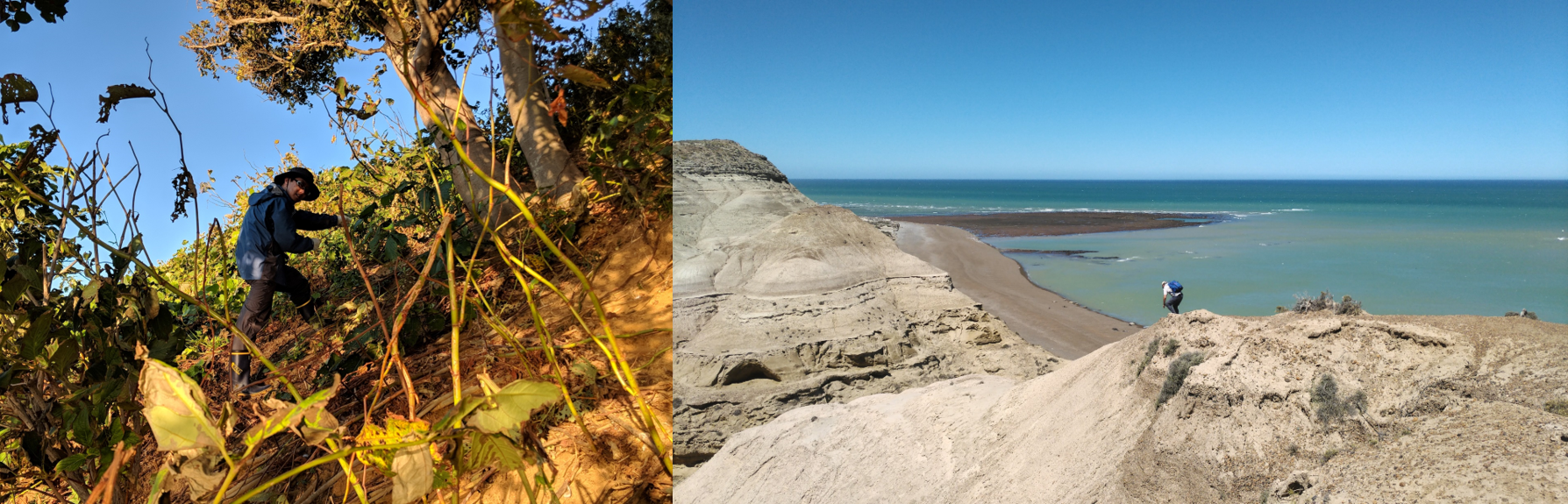 Climbing down cliffs at Niigata, Japan (left) and Peninsula Valdes, Argentina (right) to arrive at colonies of seabirds