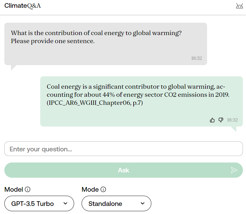 Figure 1: Screenshot from chatclimate.ai