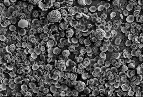 Figure 5: During the bloom demise, E. huxleyi cells shed their coccoliths, covering the entire SEM filter !
