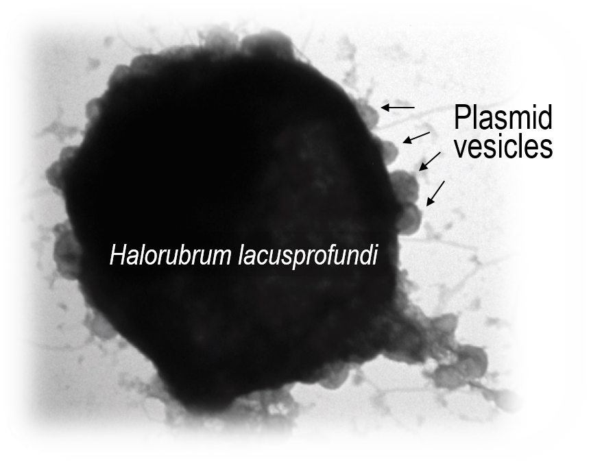 Susanne was also able to demonstrate that the plasmid integrates into the host chromosome, resolves out with host DNA, and packages the plasmid into ‘plasmid vesicles’ that then infect plasmid-less hosts. So our findings remove the last remaining major distinction between viruses and plasmids by showing that this type of extrachromosomal element that most closely resembles a plasmid (not a virus), encodes proteins that go into the particles that contain the plasmid DNA, and the particles are capable of infecting other cells.