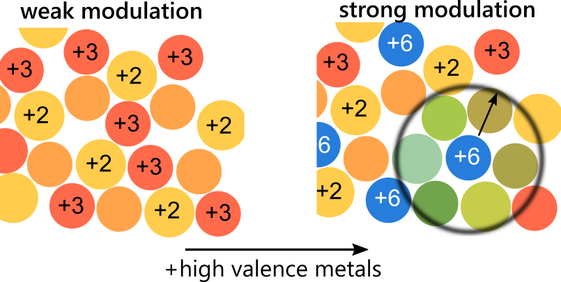 From a materials perspective, it is challenging to incorporate atoms with different electronic structure into materials that have the desired composition and atomic arrangement. We employed a sol-gel technique in which different metal salts are mixed and processed from solution, to a wet gel and final solid. This technique is important to achieve the homogeneous incorporation of all dopants.4