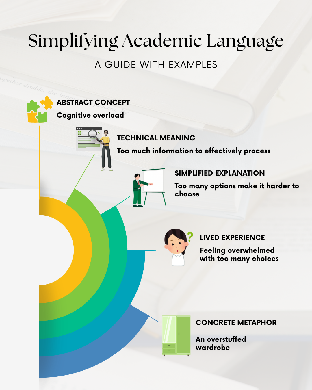 Receiving feedback from event curators like “explain what these mean—the audience members aren't scientists” made me think of imageries like a stuffed wardrobe as a metaphor for cognitive overload that leads us to the classic thought of “I have nothing to wear!” But more importantly, it highlighted how we tend to assume prior knowledge on others’ part. So, I’ll leave you with this guide, a small parting gift on how to make complex ideas clearer and more accessible.