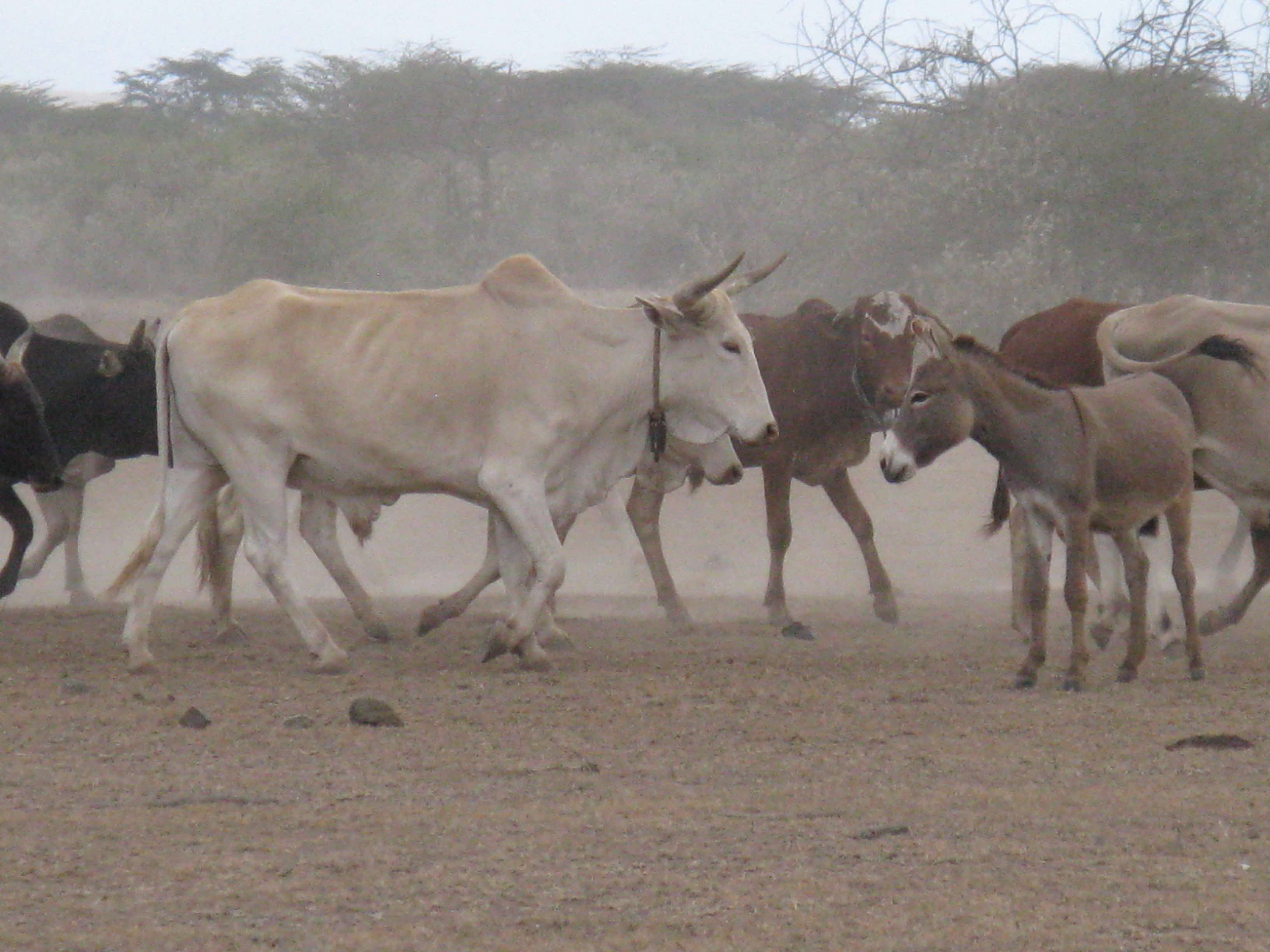 Maasai cattle and donkeys depositing fresh dung as they graze the Oloika 1 pastoral site where we excavated >2000 years old dung deposits. Photo: Fiona Marshall