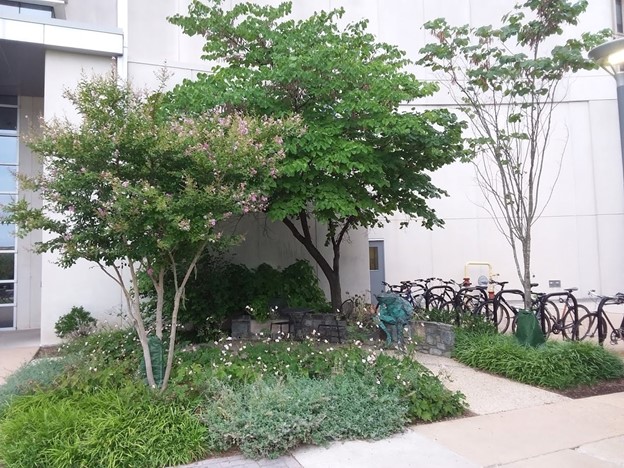 Anita B. Roberts Contemplation Garden in front of Building 37.