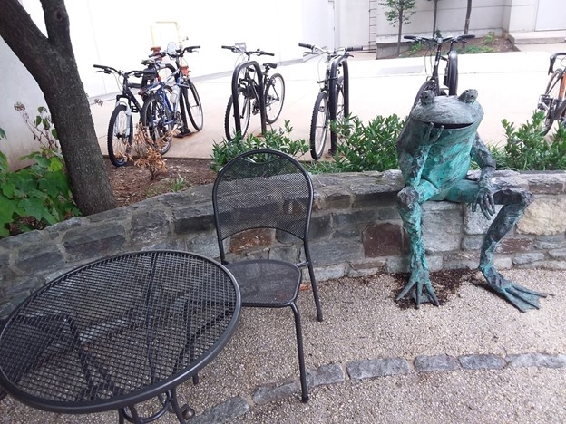 Since its completion, so many people have been there to eat lunch or have a chat with a friend. It is also a spot for a tired postdoc to take a break and enjoy the nice weather after a long day. The frog becomes the mascot of Building 37. "Let's meet up in front of the frog" is part of the daily conversation now. However, Anita's ribbon is ignored by almost all the visitors of that corner.