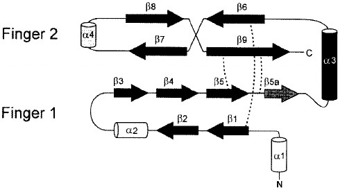 Frog the Thinker is looking at Anita’s Ribbon. The diagrammatic secondary structure of TGF-beta is shown at the lower panel.