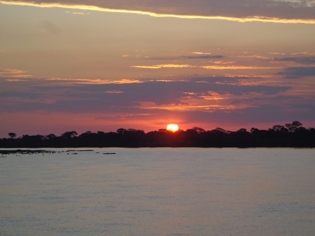 Sunset over the Paraguay River, Pantanal biome, Brazil.