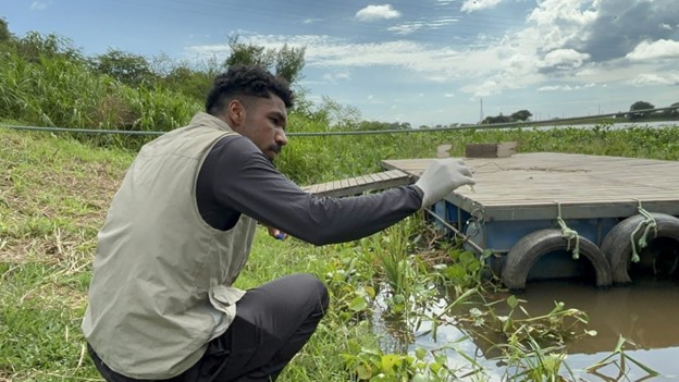 Matheus Rodrigues (co-first author of the paper) collecting water from the Paraguay River.