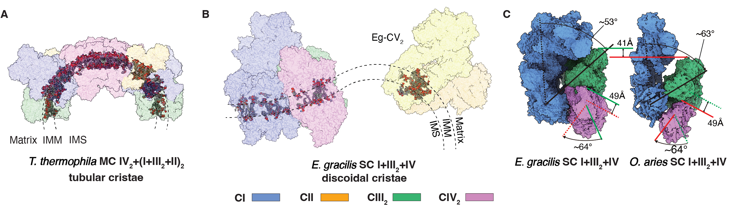 Figure 1: Diversities of ETC super- and mega-complex architectures in adaptation to mitochondrial cristae morphology.