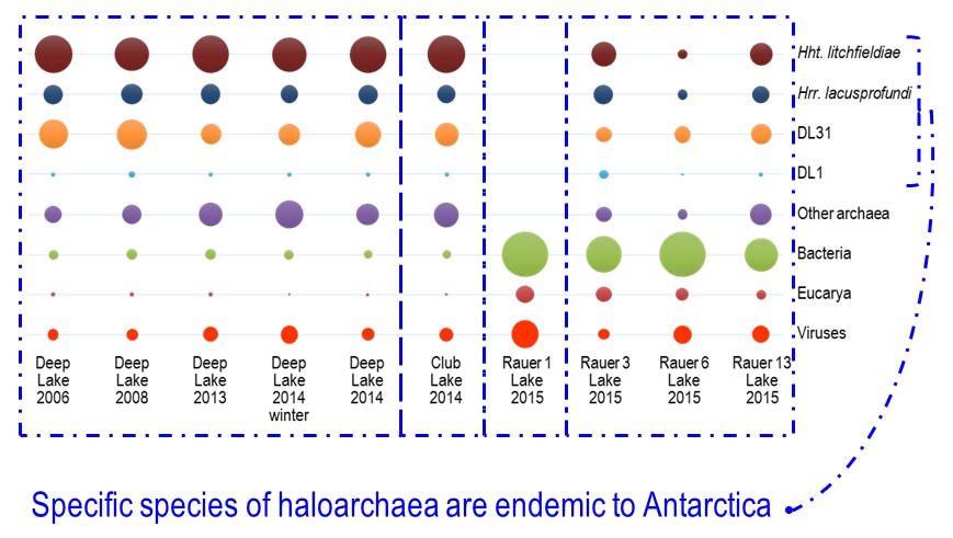 This indicates that these species are overall endemic to the Vestfold Hills-Rauer Islands and may very well be endemic to Antarctica. Very little is known about the endemism of Antarctic microorganisms (Cavicchioli Nat Rev Microbiol 2015): do regional distinctions occur (i.e. between the 16 distinct ice-free regions)?; does Antarctica have its own ‘total microbial pan-genome’ that varies to the rest of the world?; what does the extent of endemism mean for species invasion? – will the Antarctic populations be susceptible to alien species and hence ecosystem function become irrevocably perturbed? – one of our earlier studies suggests this could be the case for viral invasion of keystone bacterial species in Ace Lake (Lauro et al ISMEJ 2011).