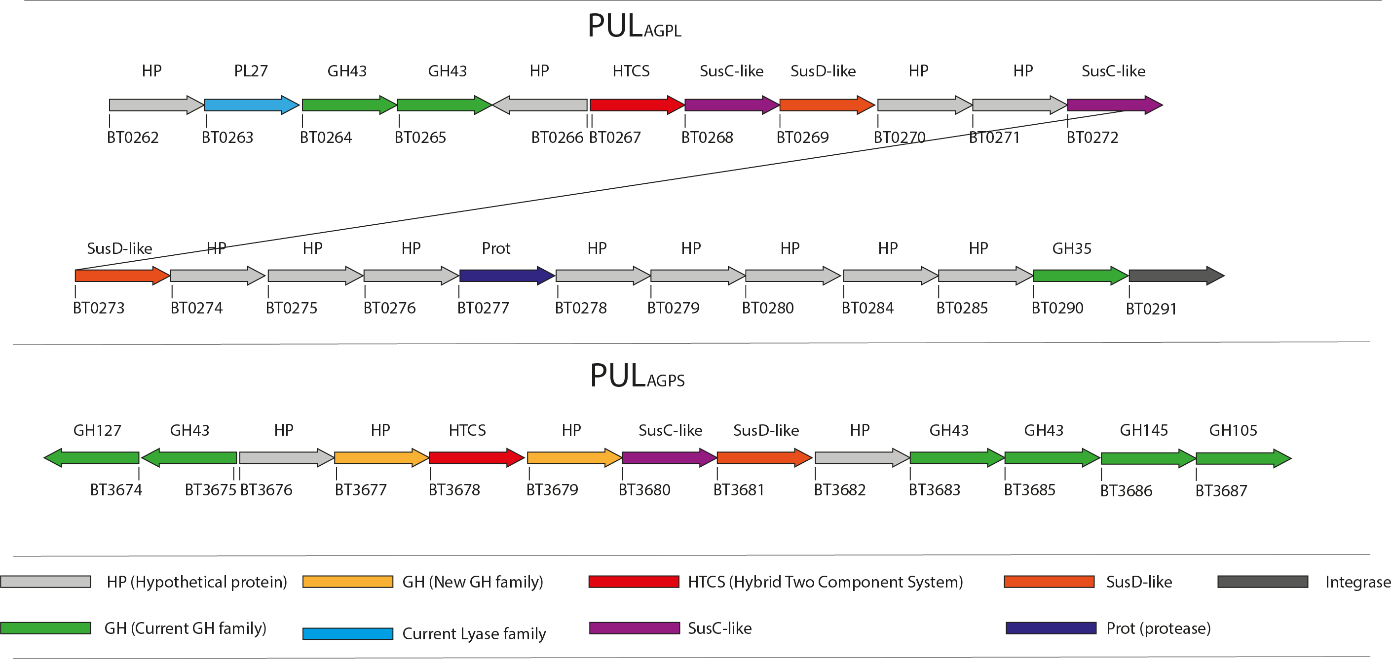 The human gut harbors a vast community of microbes, known as the human gut microbiota, with the ability to deconstruct and utilize a wide range of polysaccharides found in the human diet. The human gut microbiota collectively encode and express an incredible variety of carbohydrate active enzymes which are absent from the human genome. The human host and gut microbes form a symbiotic relationship in which the host benefits from microbial metabolites and the microbes are supplied with a plentiful nutrient source in the form of dietary polysaccharides. Foods that contain arabinogalctan (AG) include many soft drinks and confectionery as Gum Arabic AG, as well as vegetables which contain larch-type AGs.