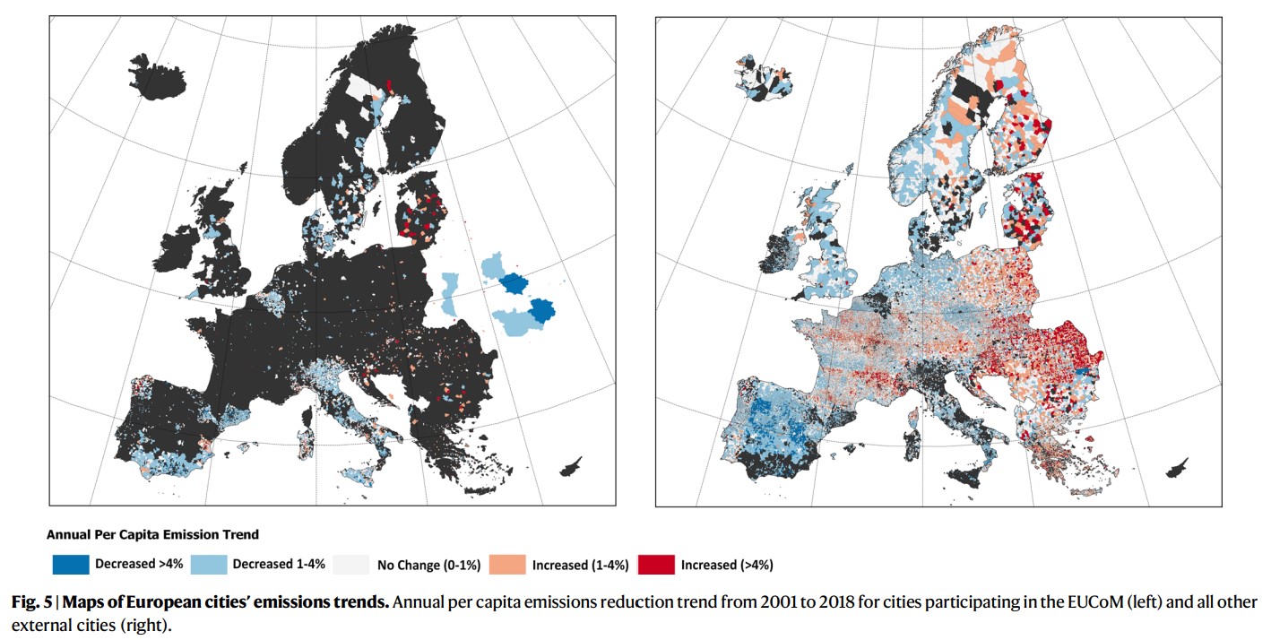 Since 2008, over 10,000 local governments throughout Europe have joined EUCoM. Signatories pledge climate mitigation and adaptation actions and set goals for emissions reductions by 2020 and 2030. Since many of these cities have not reported baseline or monitoring emissions, it is difficult for the public and policymakers to gauge progress towards their goals. When data are reported, it is often heterogeneous due to methodological and reporting difference that make it difficult to compare. Our model uses machine learning and harmonized data to estimate changes in emissions, and evaluate whether a city’s participation in EUCoM has any effect on its emissions over time.
