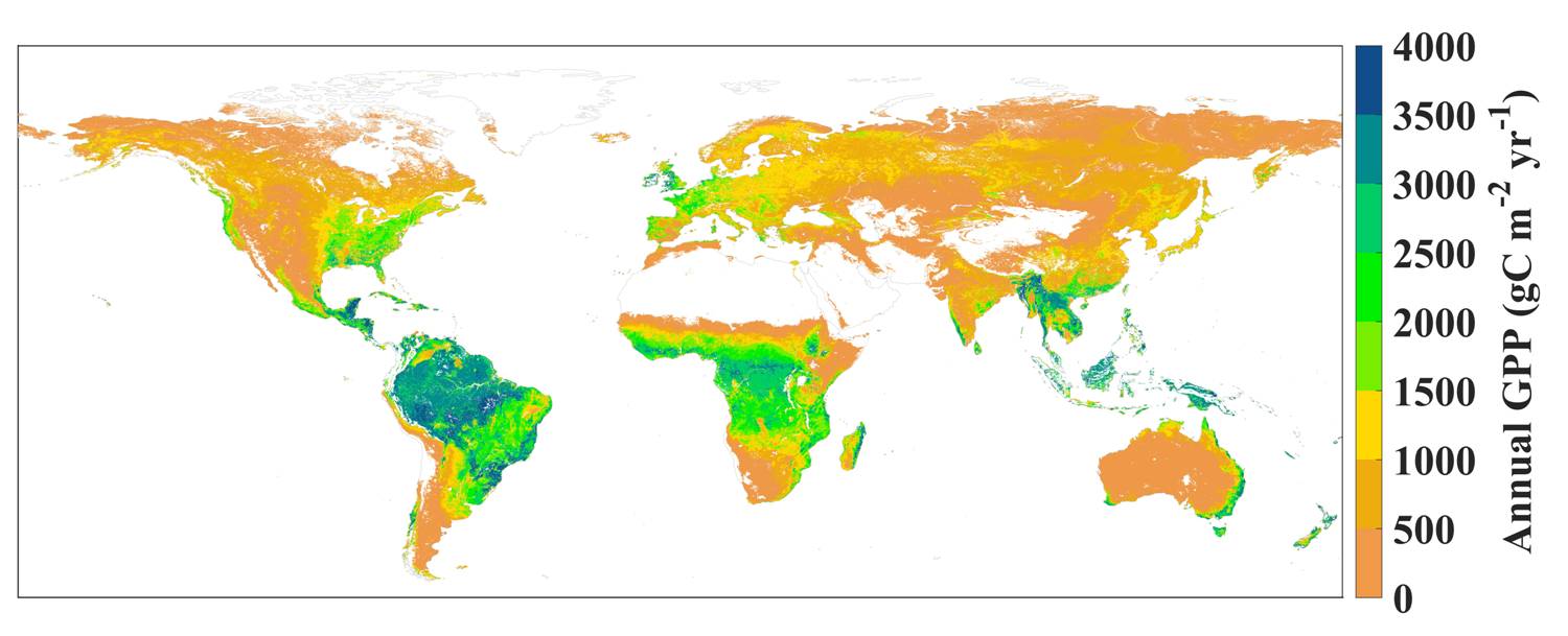 Figure 11: Global Terrestrial Primary Productivity. Low in Tropical Regions, Increasing towards Polar Cold Climates.