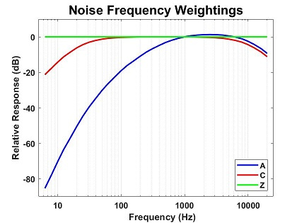 Noise exposure guidelines from both the U.S. Environmental Protection Agency and the World Health Organization utilize A-weighted noise exposure metrics, which more heavily weight frequencies between 2000 and 5000 Hz (Figure), and thereby discount lower frequencies (Branco and Alves-Pereira, 2007). A recent meta-study of LFN and health effects reinforces that the A-weighting filter is not ideal to evaluate the non-auditory effects of low-frequency noise (Alves, et al., 2020). Ascari et al. (2014) affirm that models of A-weighted sound are not appropriate to evaluate the contribution of Low Frequency Noise to the soundscape (Ascari, et. al, 2014). De-emphasizing LFN content by A-weighting can lead to underestimation of potential harm from physical and psychological effects associated with frequency content and other characteristics of sound not captured by A-weighted metrics (Waye, K.P., 2011). The difference, ∆ between C-weighted (nearly independent of frequency) noise measures (Figure), commonly expressed as dBC minus dBA, provides crude information about the presence of low frequency components in noise (Roberts, 2010).