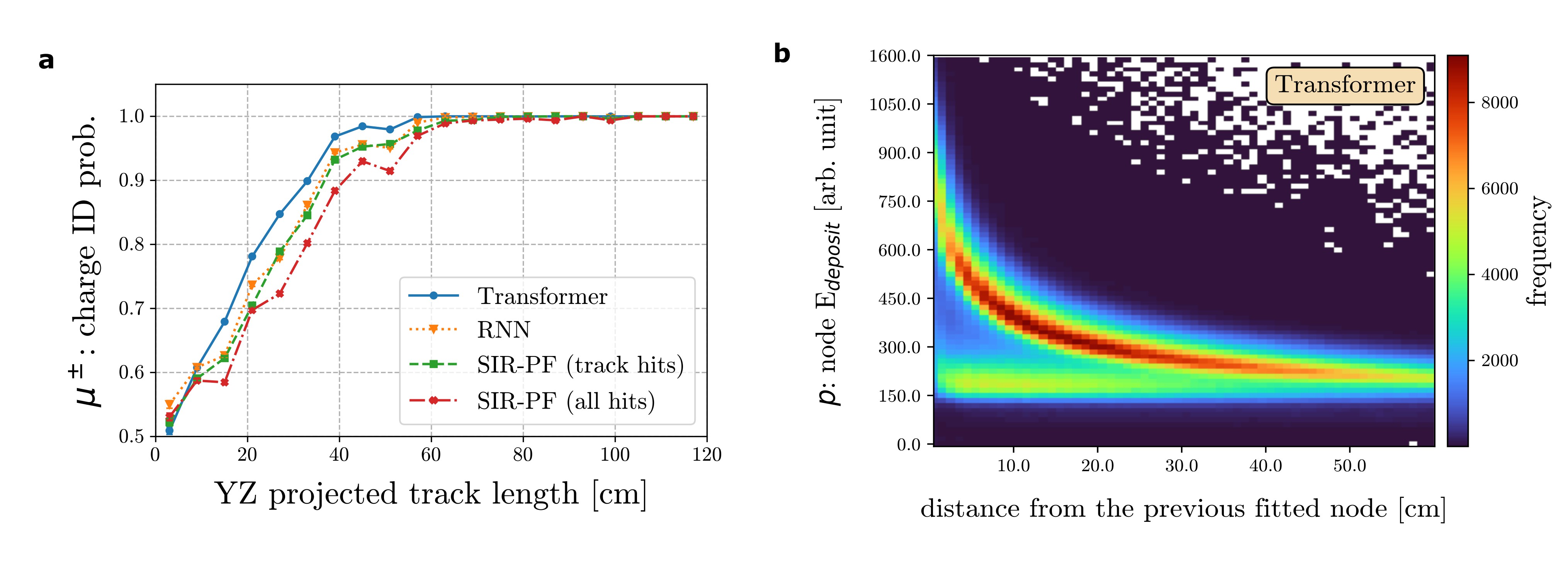 The accuracy of the trajectory fitting dramatically affects the precision of physics measurements, making the neural network reconstruction better capture the curvature due to the magnetic field compared to the Bayesian filters, thus helping improve the charge identification accuracy. This enhanced resolution allows for improved detector performance or more compact designs. The momentum resolution for protons is also better with the neural networks, especially the Transformer. The particle identification capability is also enhanced with the neural networks, as demonstrated by the more accurate reconstruction of the energy deposited by protons and improved particle identification for various particles and energies. Some of these results are shown in Figure 2.