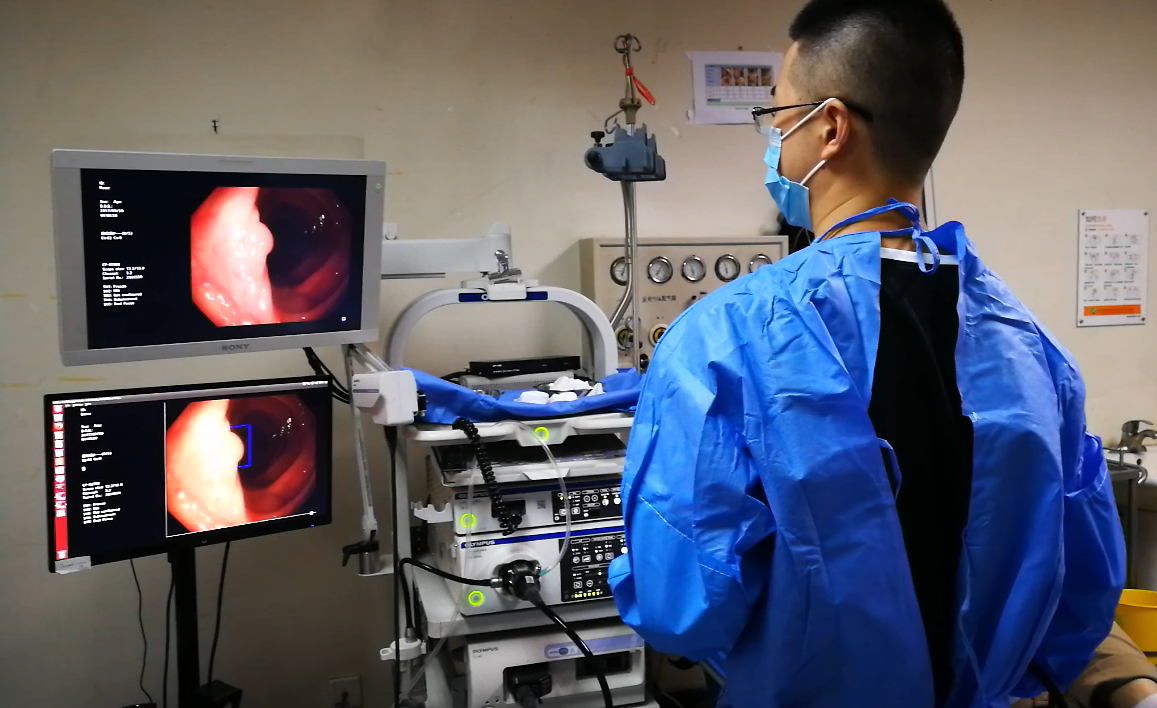 As a next step, Dr. Xiao’s team integrated the algorithm into a real time computer aided diagnostic (CAD) system. When the system was first deployed in our center in Apr 2017, the latency was about a few hundred millisecond. With parallel deployment of Nvidia Titan X Pascal GPUs, the systems latency was shortened to dozens of millisecond at a 30 frames per second refresh rate. As a result, the endoscopist could perform colonoscopy only by looking at the monitor of CAD system, instead of the original monitor.
