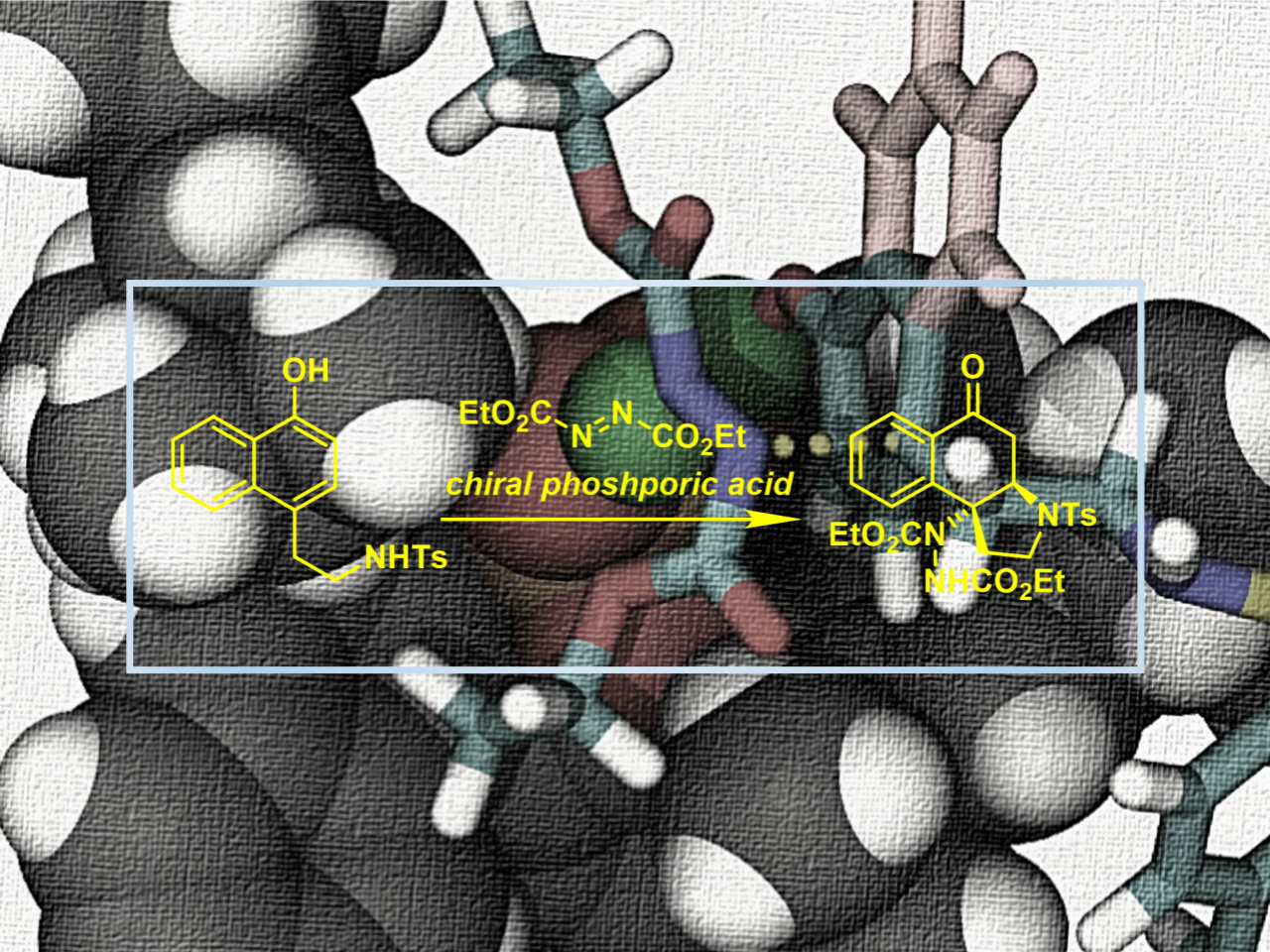 In their recent paper published in Nature Communications, Prof. You and coworkers described their latest progresses on CADA reactions. For the first time, an asymmetric aminative dearomatization/Michael addition cascade was realized on α-naphthols.