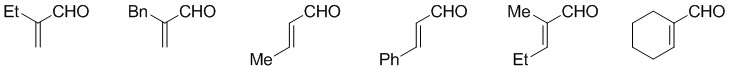 Fascinated by this alternative approach, we were determined to apply it in the laboratory, and had one of the most powerful transformations in organic chemistry in mind: the Diels-Alder reaction, or more specifically, the asymmetric [4+2] cycloaddition of cyclopentadiene and structurally diverse enals. The majority of established chiral catalysts for this reaction have one significant drawback, a stark bias for a particular substitution pattern of the aldehydic reaction partner. To identify a catalyst capable of accommodating the full range of enal substitution patterns, i.e. α-, β-, and α,β-disubstitution, we carefully chose a set of six representative enals that differed in the position, nature and size of their substituents.