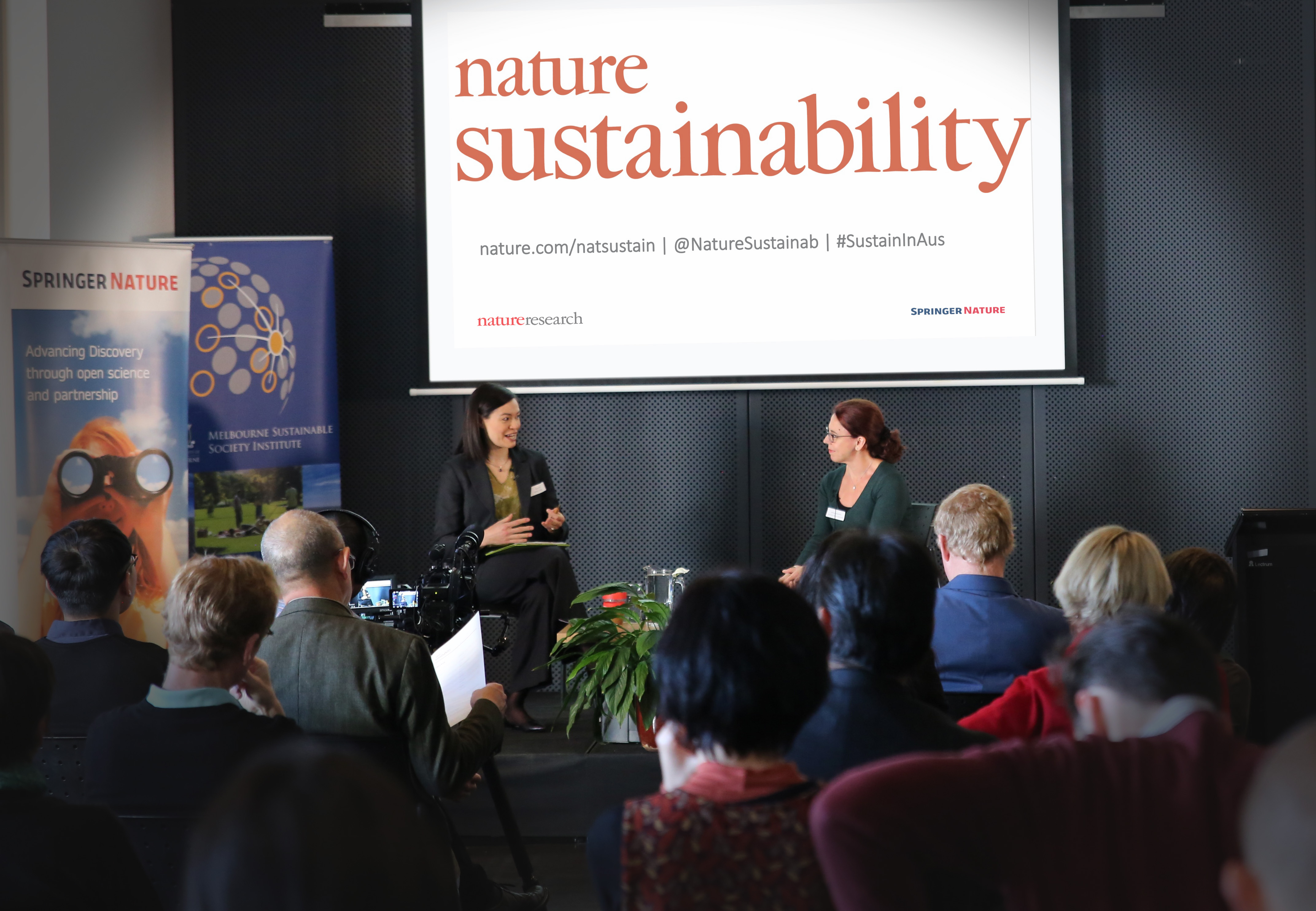 On Tuesday 17 July we co-hosted the Australian launch of Nature Sustainability with the Melbourne Sustainable Society Institute (MSSI) at the University of Melbourne. We were very fortunate to have Chief Editor, Monica Contestabile, in attendance, alongside an invited panel from research and government to discuss the complex science/policy interface related to sustainability and Grand Challenges.