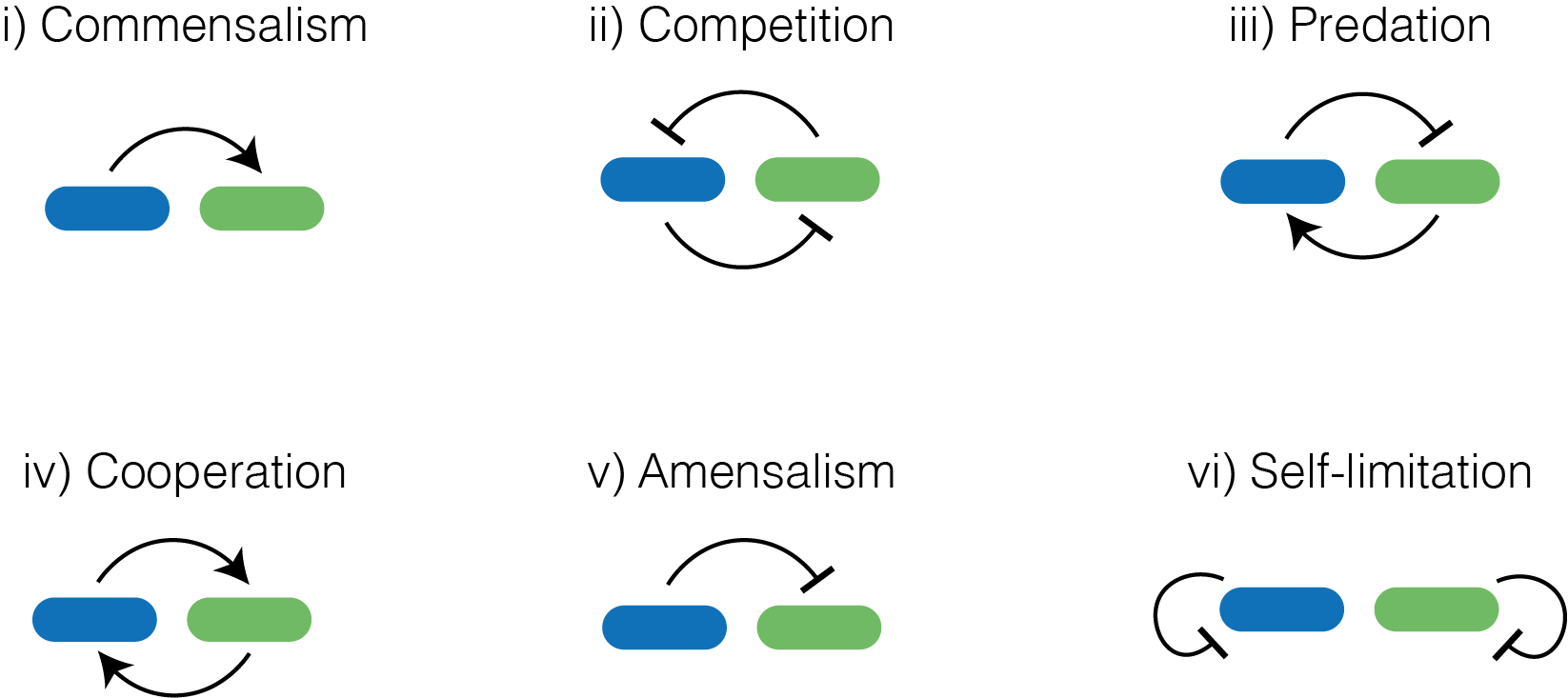 Microbial communities do not form by simply mixing multiple species together. Differences in species growth rate and fitness will normally result in the most competitive strain occupying mutual limiting resources and driving the remaining species to extinction. Communities have a better chance of forming when the species involved communicate with one another to coordinate growth and consumption of resources, enabling their coexistence and prevent dominance of individual species. The types of interaction in a community will influence the type of population dynamics we see. Stability, oscillations and even chaos have all been observed in microbial communities. Understanding the interactions that enable the formation of microbial communities and how they can inform the population dynamics is an extremely important step required to improve our ability to build microbial communities for biotechnology applications, and manipulate existing microbiomes to treat disease.