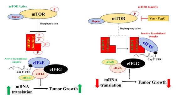 Ven-PegC impedes cap-dependent translation and protein synthesis.
