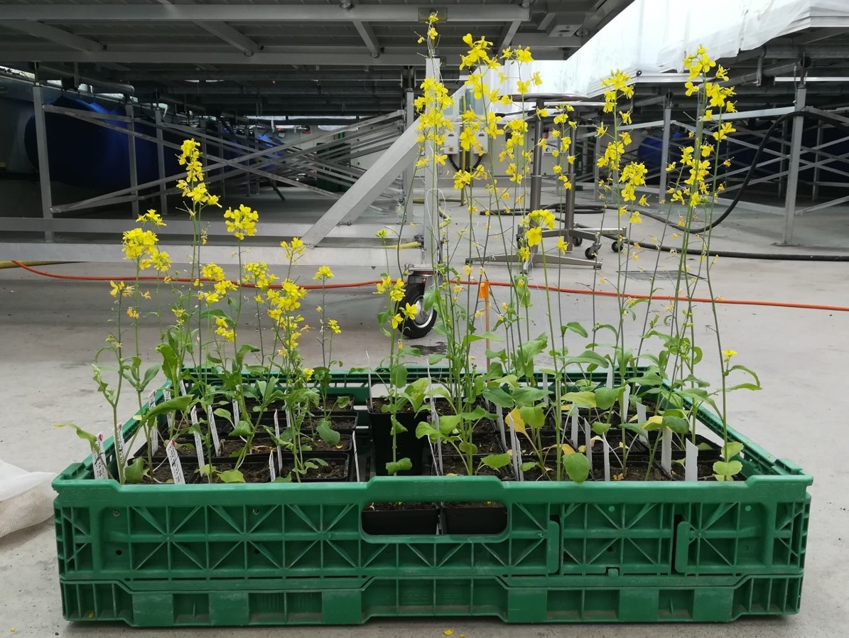 To address this issue, we conducted an experimental evolution study including 8 treatments with fast cycling Brassica rapa plants, encompassing a full factorial design of three different factors: soil (growing either in limestone or tuff soil), hand-pollination or bumblebee-pollination, with- or without aphid-herbivory. We studied the impact of soil, pollination, herbivory, and their interactions on driving divergent evolution in plant traits after 8 generations of selection. For herbivory, we infested plants at the two true leaves stage with 10 Brevicoryne brassicae aphids, and allowed aphids to feed and reproduce on plants for three days, after which aphids were removed. We used Bombus terrestris to induce pollinator mediated-selection, and limited visits to 7 bumblebees and 5 visits per bumblebees to ensure pollen limitation, providing a near-natural context for observing evolutionary response in plant traits. To control for the contribution of pollinator to plant evolution, we used hand-pollination, which represents evolution without pollinator-mediated selection.