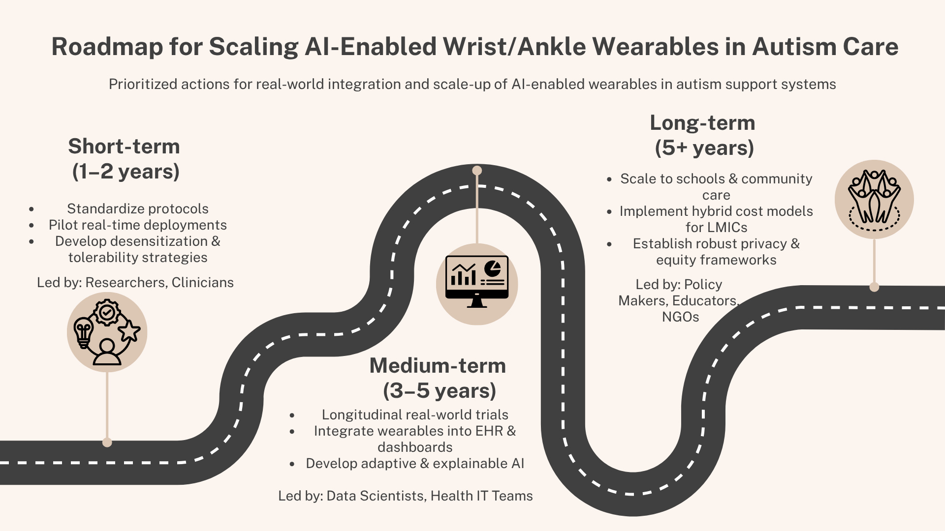 We therefore developed a roadmap outlining short-, medium-, and long-term priorities for scaling AI-enabled wrist and ankle wearables responsibly within autism care systems.