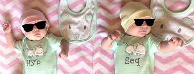 Fig. 3. Rustem’s twins in the ‘Hyb’ and ‘Seq’ onesies, when they were born in the year the CosMx SMI project was officially named ‘Hyb & Seq’.