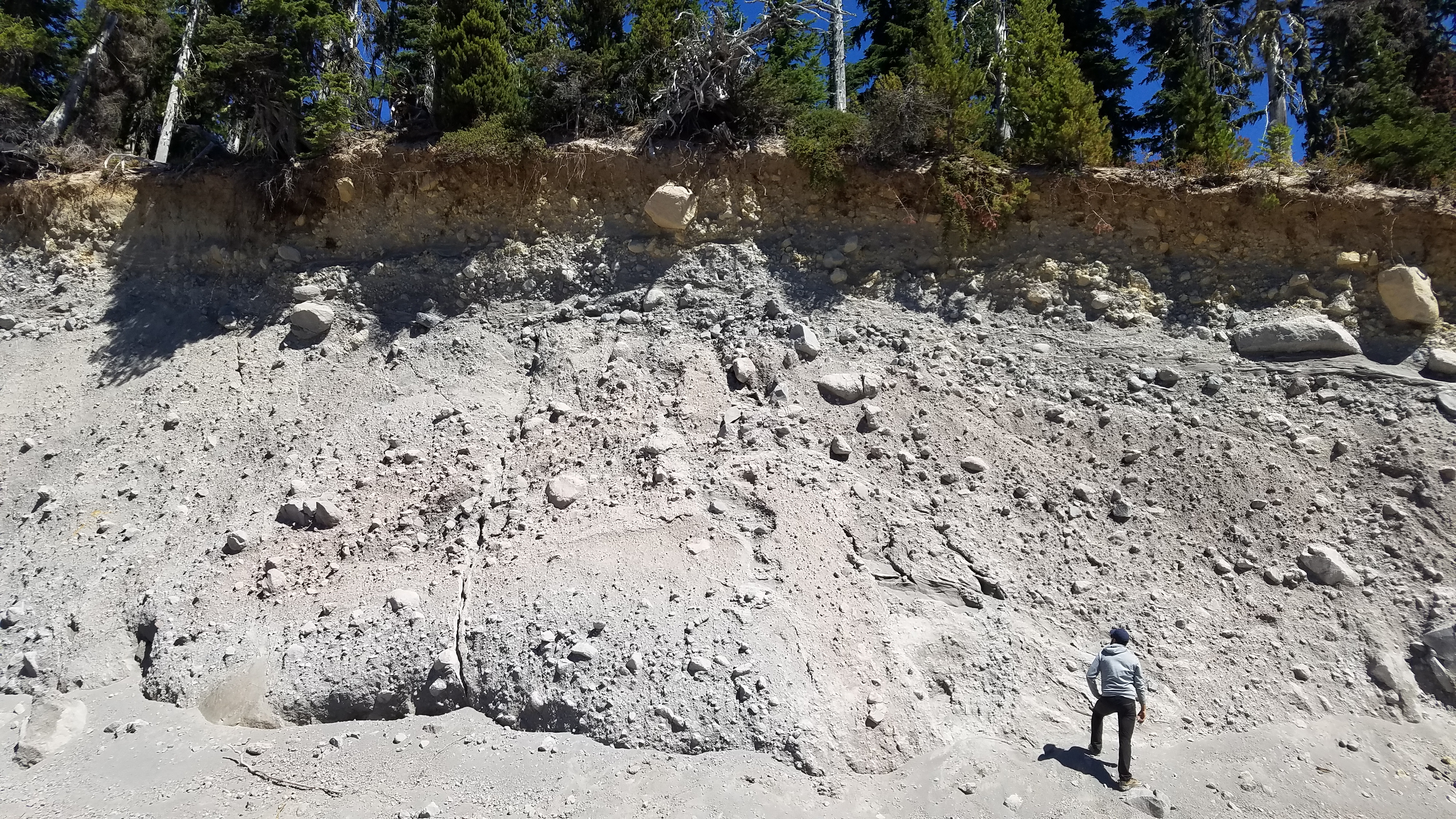 We then considered a thought experiment: the widening of the grain-size distribution would lead to the compaction of the granular avalanche on steep slopes, subsequently increasing pore-fluid pressure and reducing the mixture's effective shear stress. With a hypothesized mechanism in mind, we sought evidence in past volcanic eruptions.