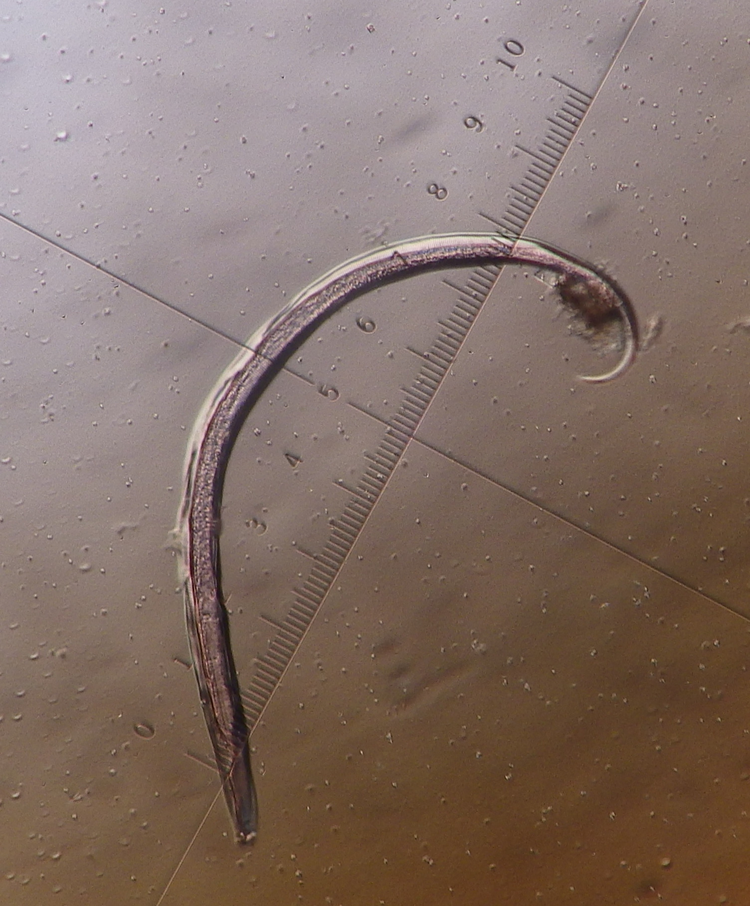 Fig 1. Plectus sp. 200X magnification. Nematodes are a major component of soil biodiversity. They are important links in the decomposition food web and can be major consumers of smaller organisms or disease agents of plants and animals.