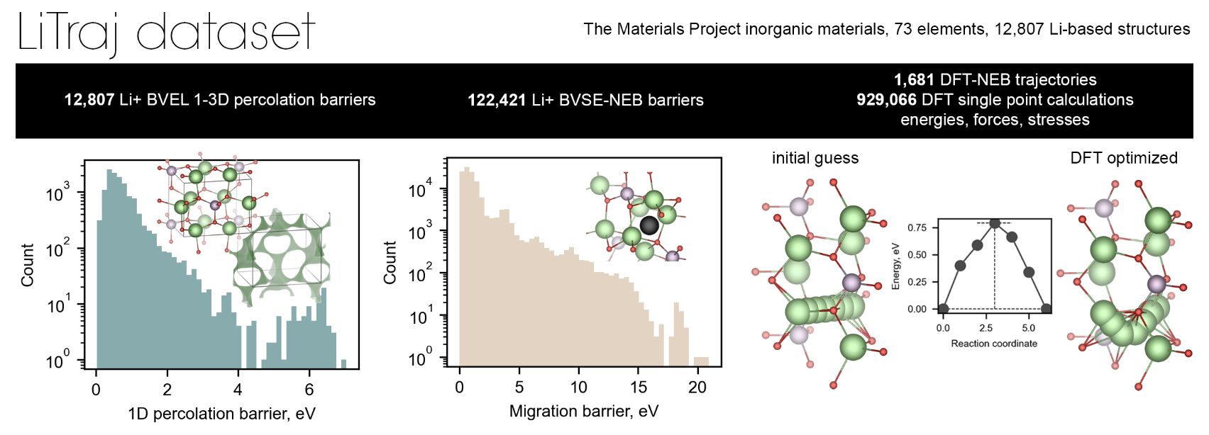 The authors of this study address this gap head-on by introducing LiTraj , a dataset comprising over 130,000 calculated migration barriers and trajectories across diverse crystal structures. This dataset includes: