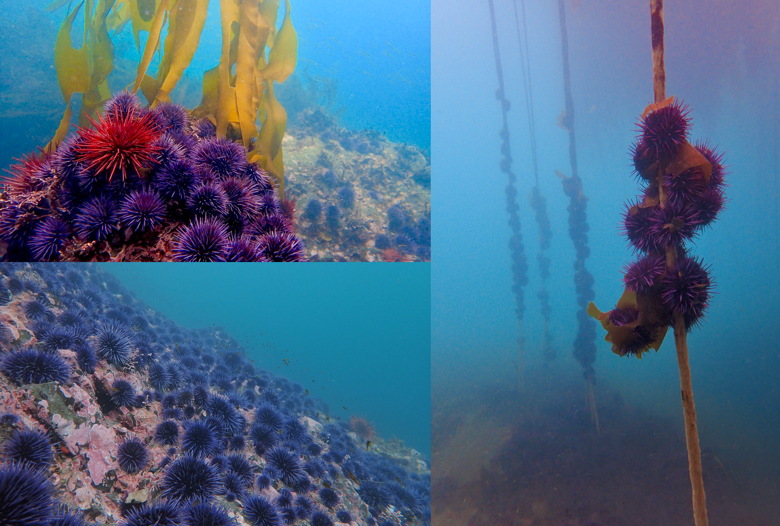 Grazing fronts of purple urchins (Strongylocentrotus purpuratus) gnaw away at bull kelp (Nereocystis leutkeana).