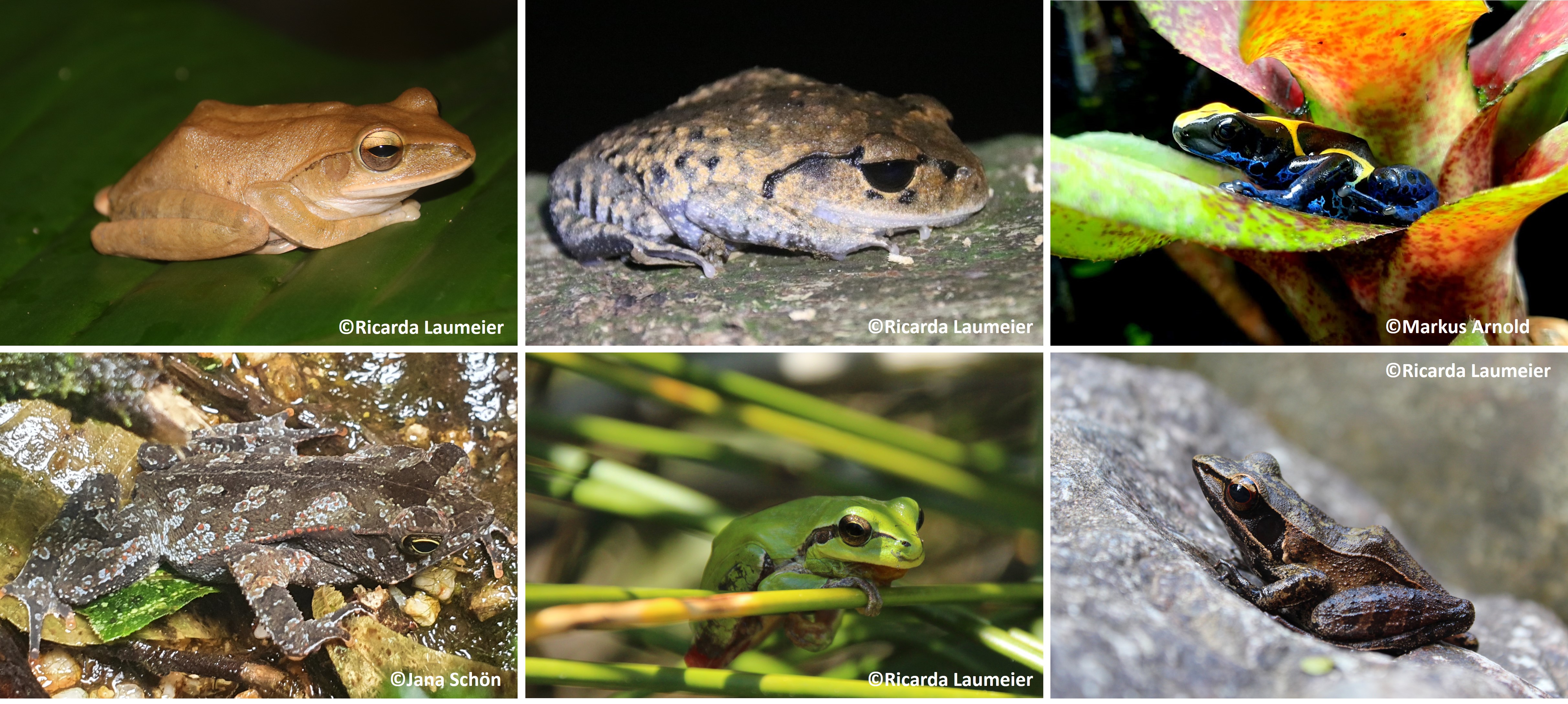 Frogs and toads (the amphibian order Anura) are not always brown and green, but exhibit an incredible range of colours, patterns and even textures that did not develop by chance (Figure 1). Some species blend in seamlessly with their surroundings to not be detected, while others use conspicuous colours and patterns (aposematism) as a warning signal to shout: “Don’t touch me, I’m poisonous and inedible!” But colour does not only function as visual signal as we show.