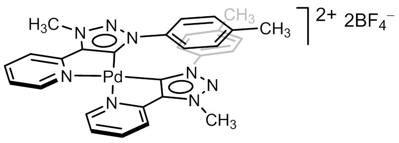 Figure 2. Cationic bis(pyridyl-functionalized 1,2,3-triazol-5-ylidene)palladium(II) complex (Pd-NHC) from Chem. Commun. 2016, 52, 1571.